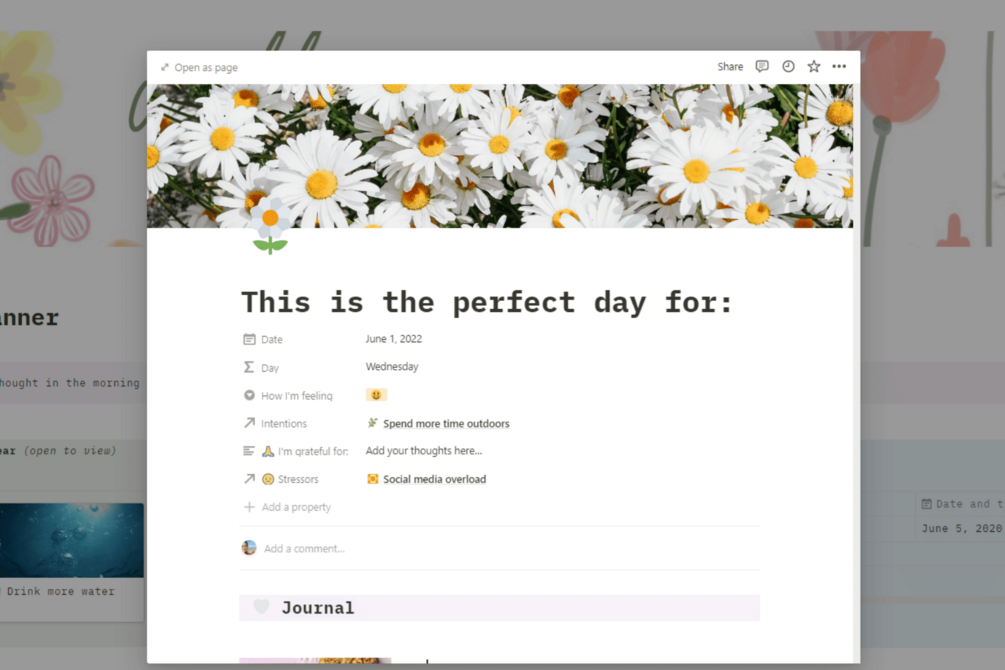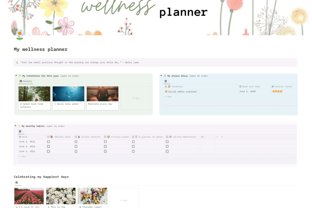 Notion Template: Wellness planner & Journal